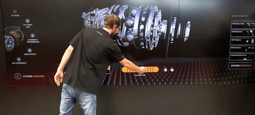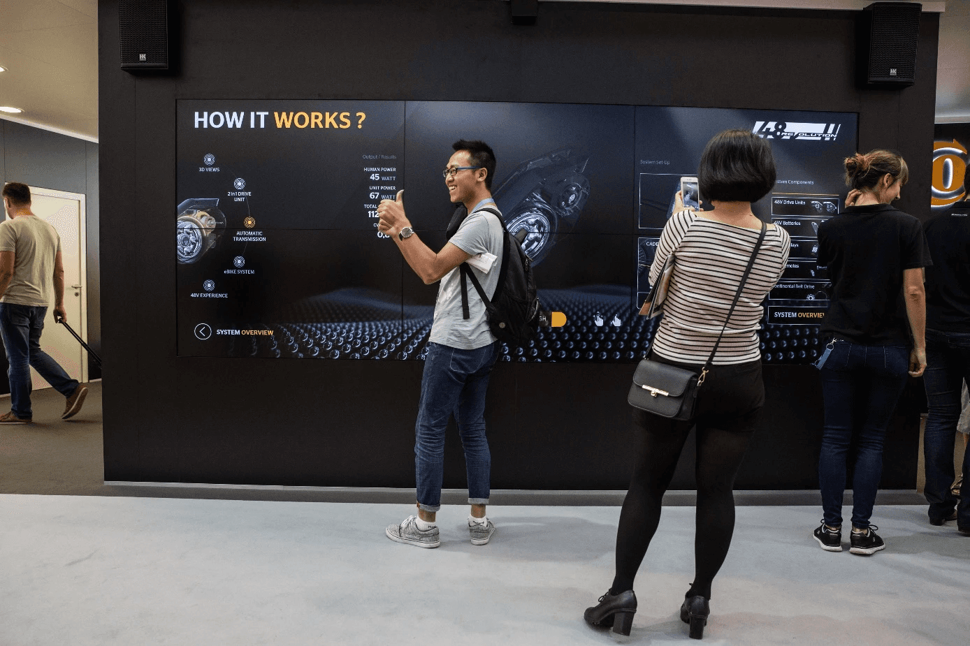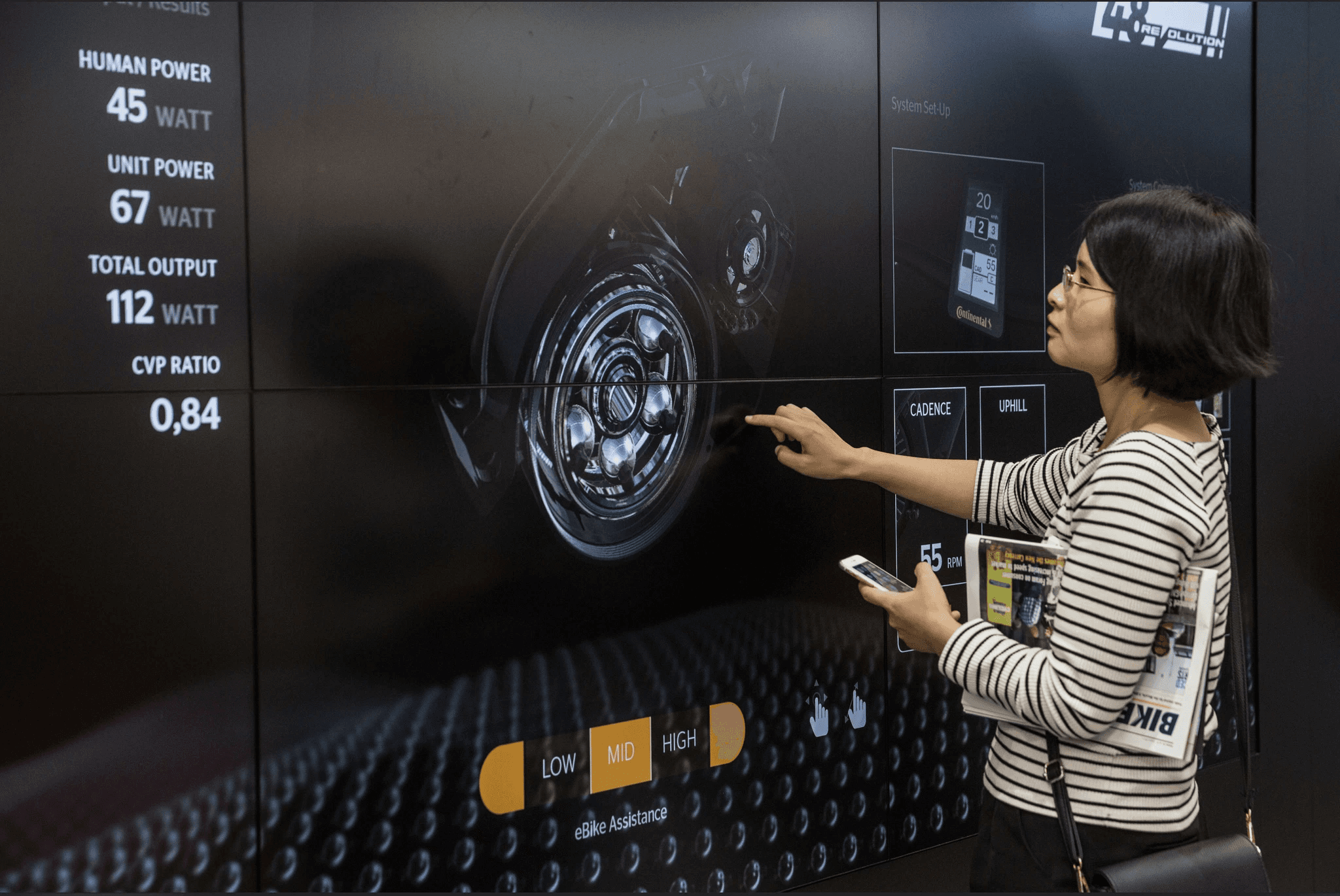 For the Eurobike trade fairs in 2017 and 2018, we created an innovative interactive booth for Continental, highlighting their new "48 Revolution" E-bike drive system. The booth featured a multi-touch video installation and a custom application, allowing visitors to explore and engage with the E-bike technology in a fully immersive way.